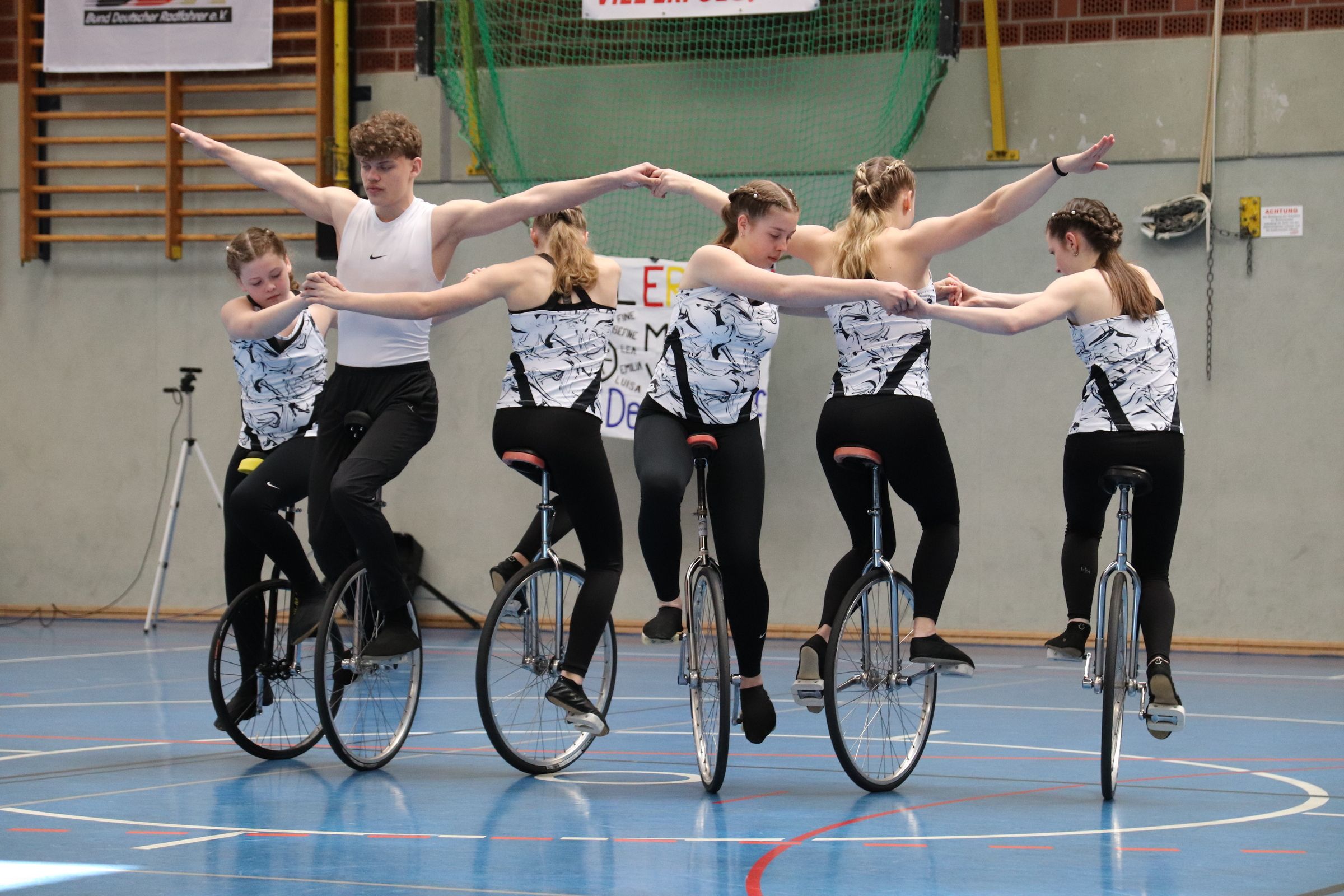 Das diesjährige DM-Halb-Finale für den 4er und 6er Kunst- und Einradsport sowie die 1.+2.EM-Qualifiaktion für die EM im 4er Kunstrad wurde am 04.04.2025 in Lengerich ausgetragen. Aus Baden-Württemberg waren Mannschaften aus Nenzingen, Denkendorf, Oberesslingen und Ebnat Start.