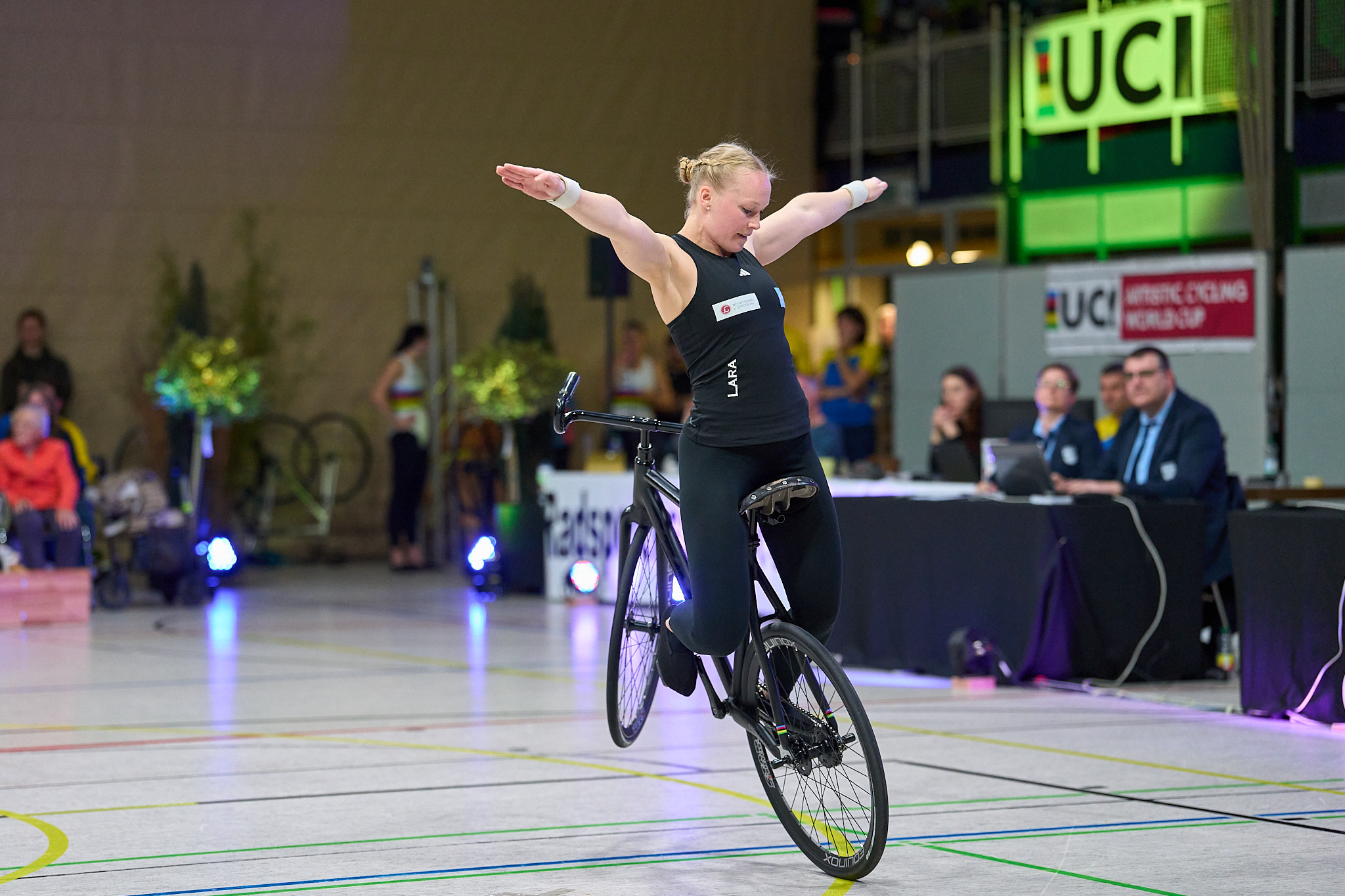 Bei den Frauen im 1er konnte Lara Füller (Poppenweiler) mit einer nahezu fehlerfreien Kür und überragenden 192,75 Punkten holte sie sich den Tagesssieg. Auch den Welt-Cup 2025 konnte Lara Füller vor der amtierenden Deutschen Meisterin Ramona Dandl und Weltmeisterin Jana Pfann, die nur drei Wertungen hat, gewinnen. Da beim Finale nur die 10 besten jeder Disziplin antreten, waren die baden-württembergischen Sportlerinnen die für andere Nationen starten in Gäufelden nicht am Start. Belegen aber in der Gesamtwertung folgende Ränge: Platz 13 Mia-Marie Muffler (Spanien/Orsingen), Platz 16 Alexandra Georgiadis (Griechenland/Wendlingen) und Platz 19 Sofia Reichert (Bulgarien/Poppenweiler).
